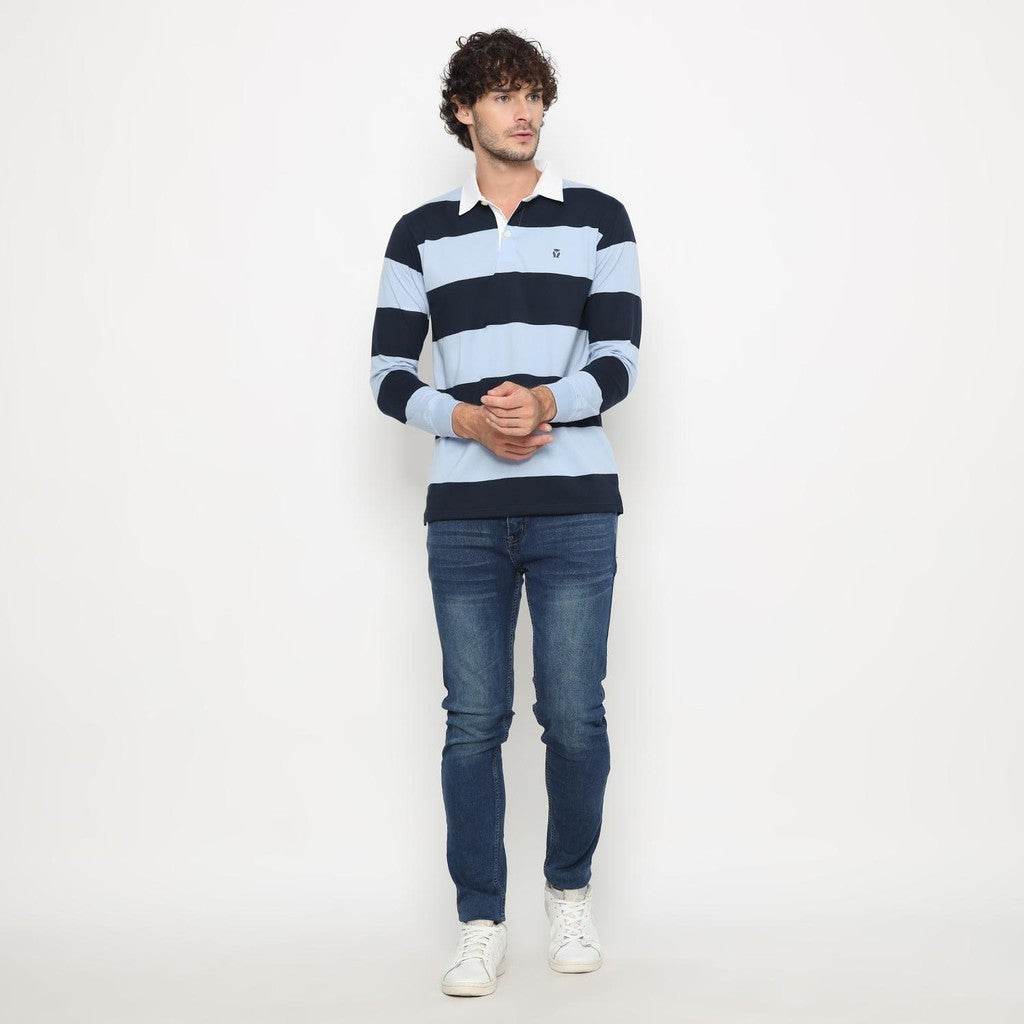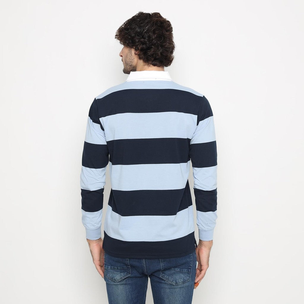 Matsuda Kaos Rugby Polo Shirt Katun Pria Lengan Panjang Nagai Navy Sky Blue