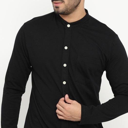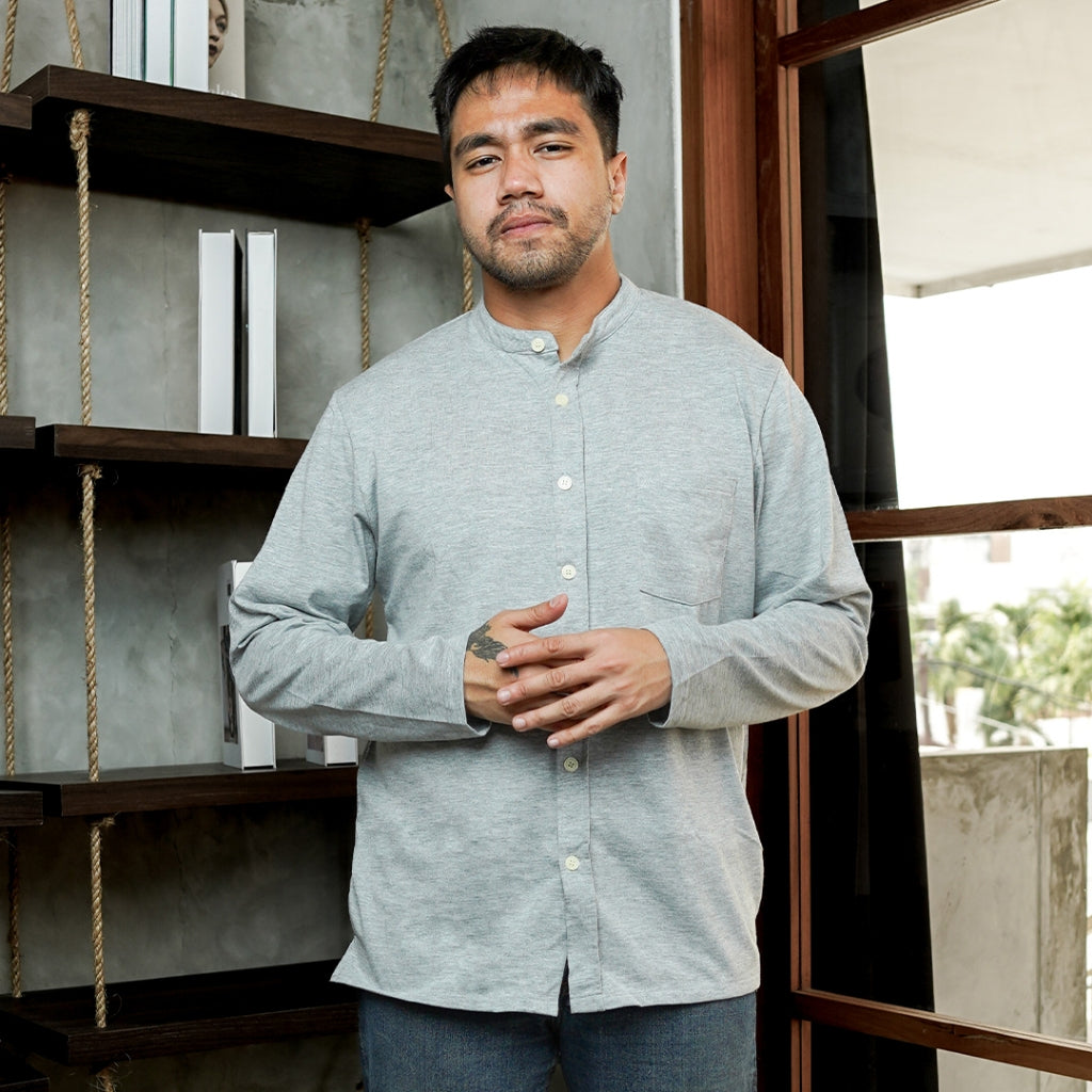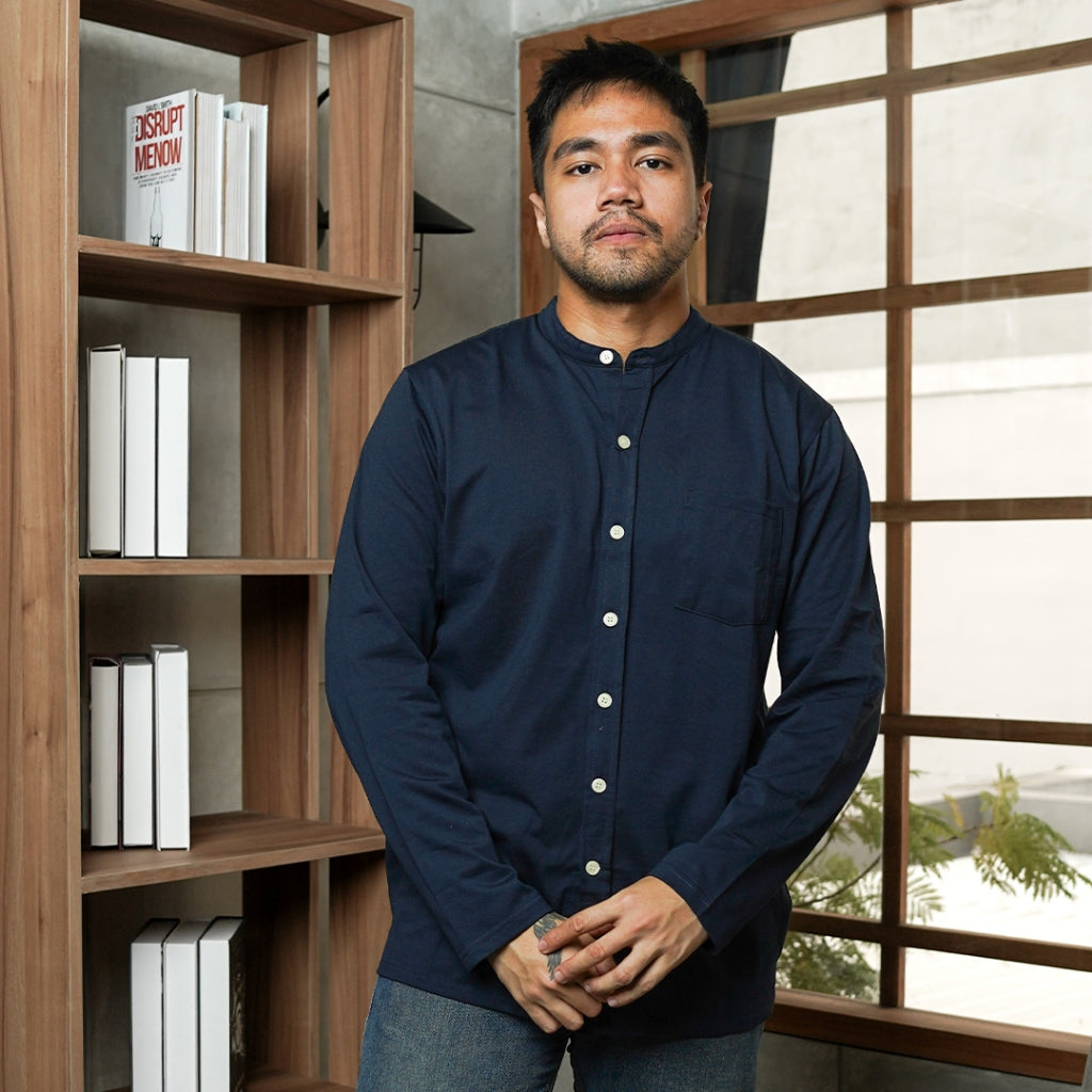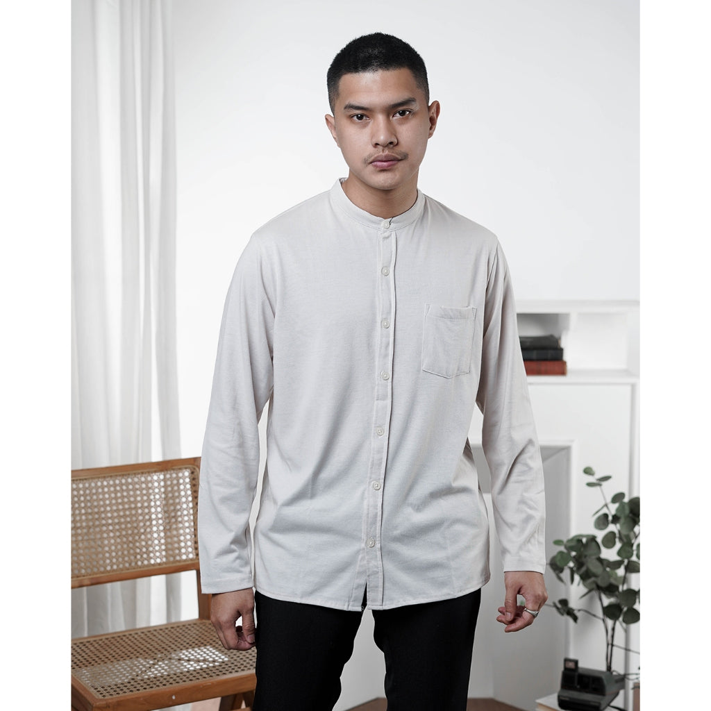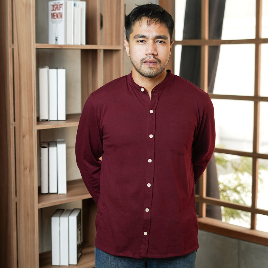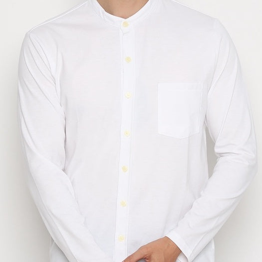 MATSUDA Kemeja Pria Polos Kerah Shanghai Lengan Panjang Katun Koshigaya