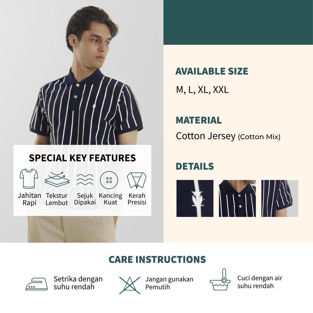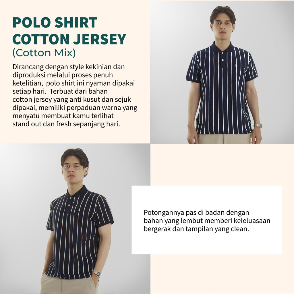 MATSUDA Baju Kaos Polo Shirt Dewasa Stripe Pria Kerah Katun Otawara Navy