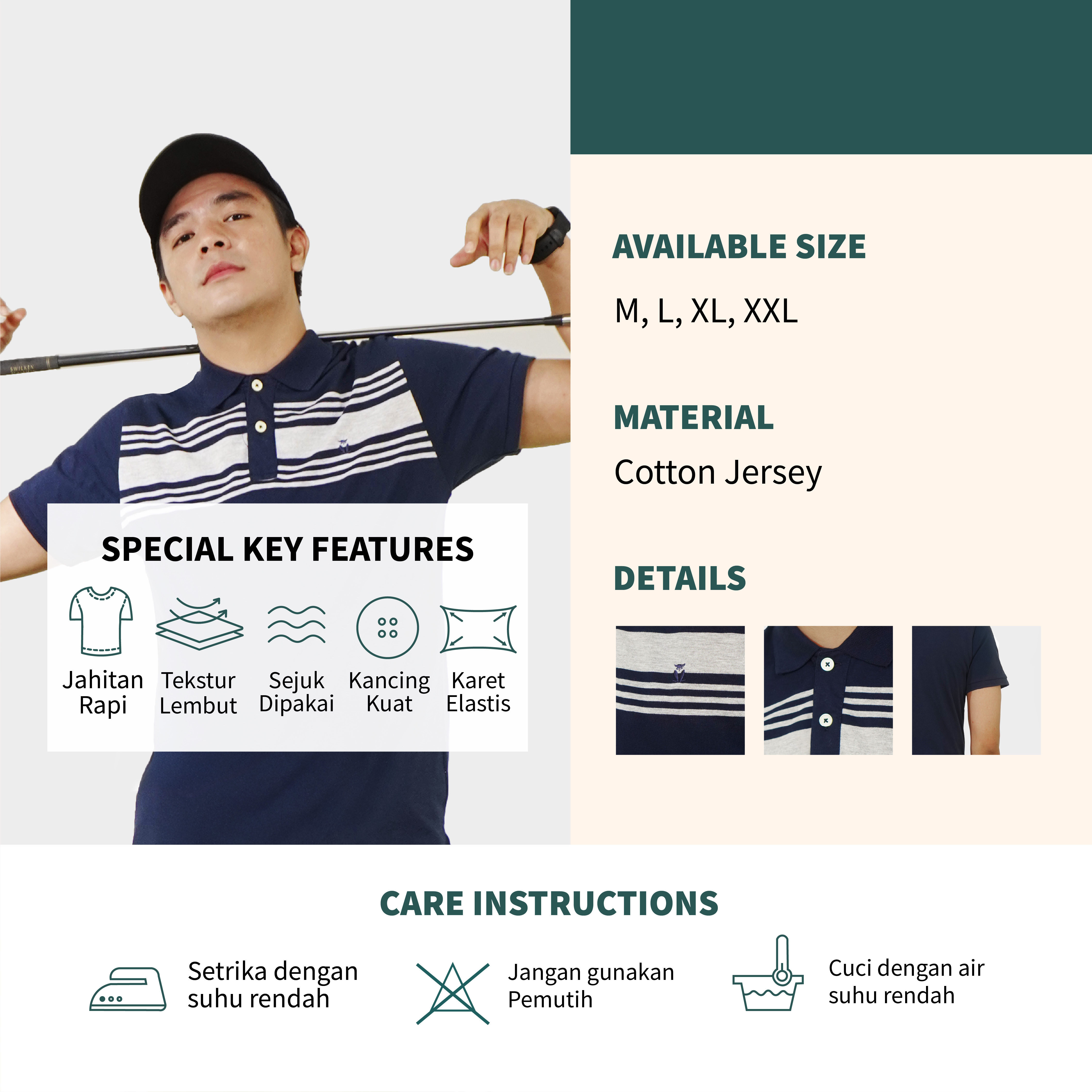MATSUDA Baju Kaos Polo Shirt Dewasa Stripe Pria Kerah Katun Sanmu Navy