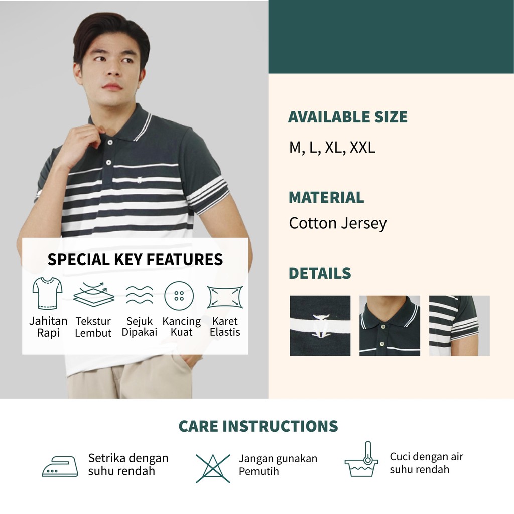 MATSUDA Baju Kaos Polo Shirt Dewasa Stripe Pria Kerah Katun Shinagawa DK Slate