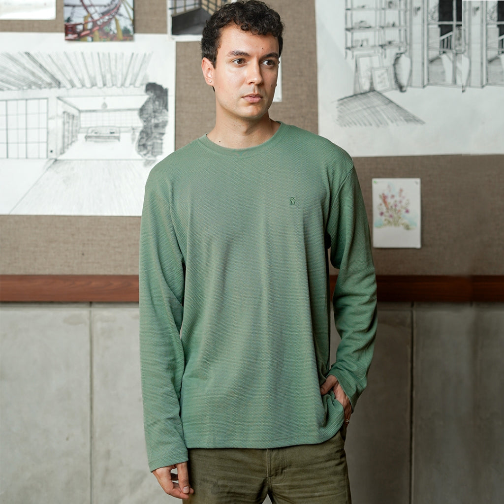 MATSUDA Kaos Lengan Panjang Texture Popcorn Katun Nagato