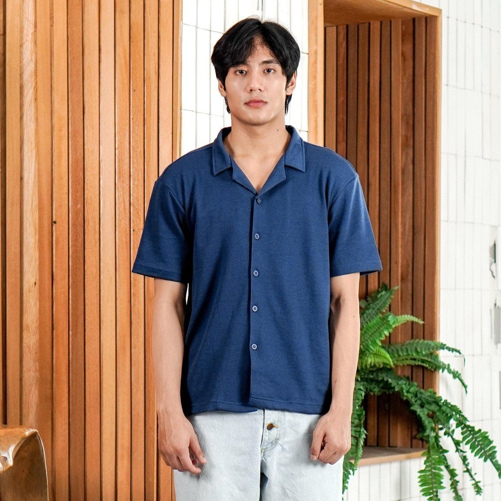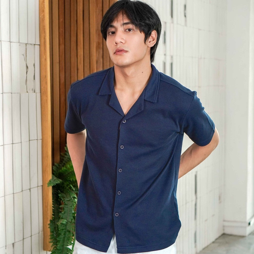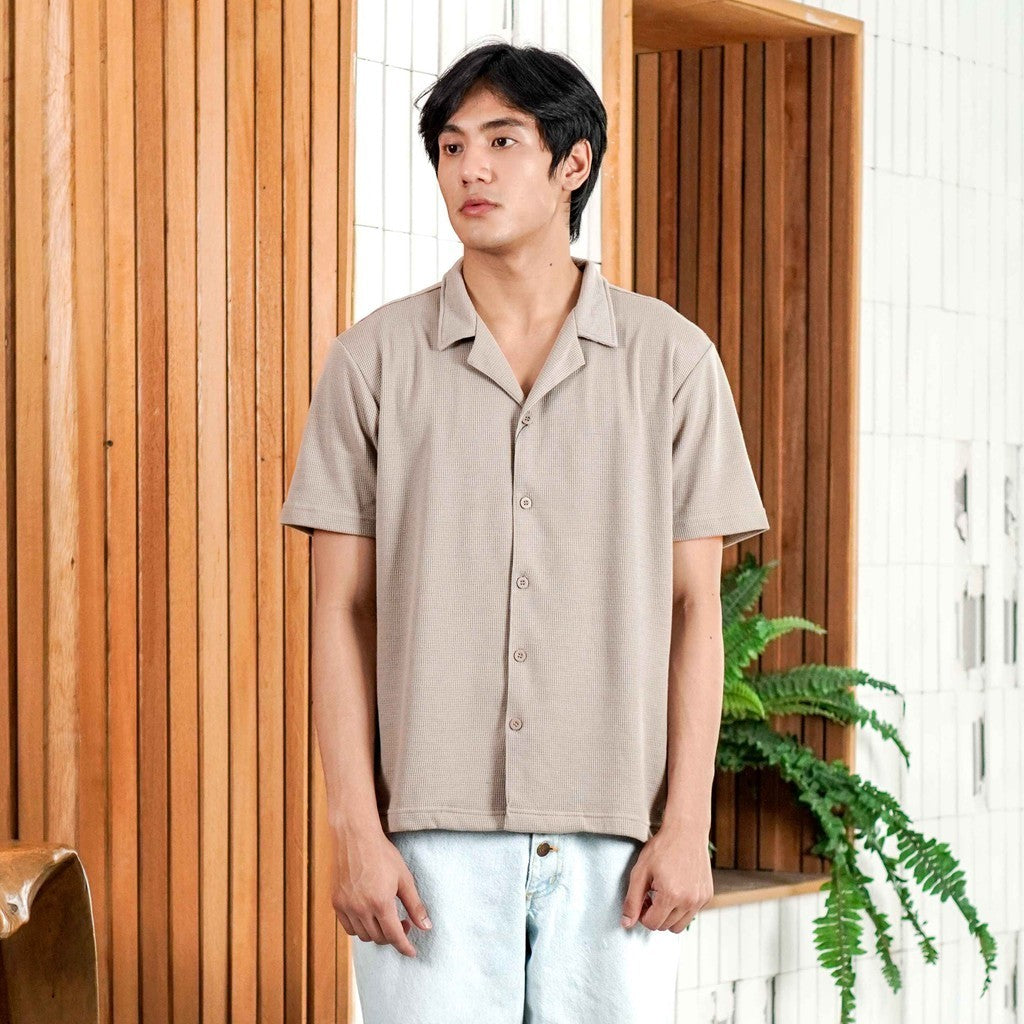 Matsuda Kemeja Pria Lengan pendek Waffle Kasual Sagae