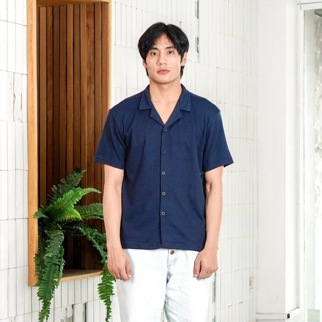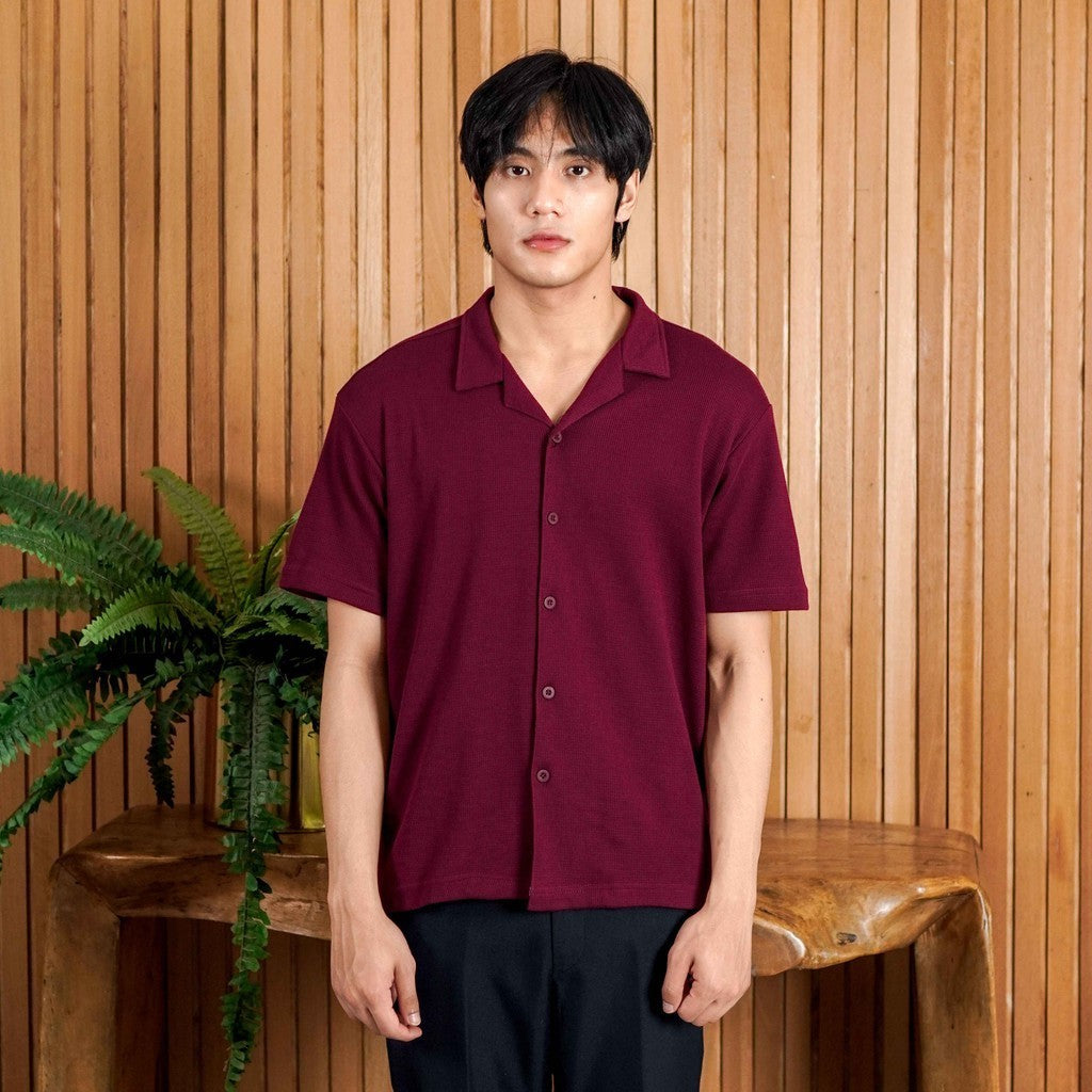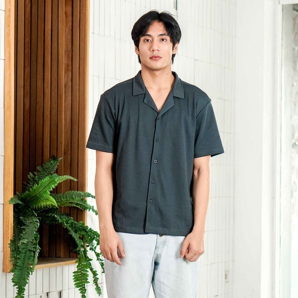 Matsuda Kemeja Pria Lengan pendek Waffle Kasual Sagae
