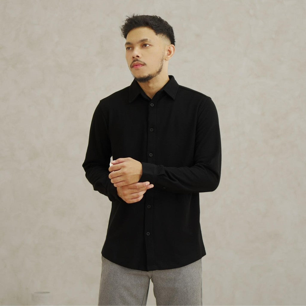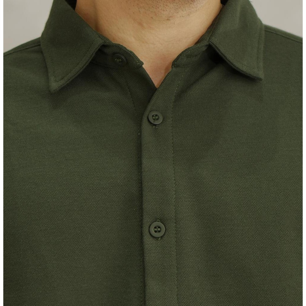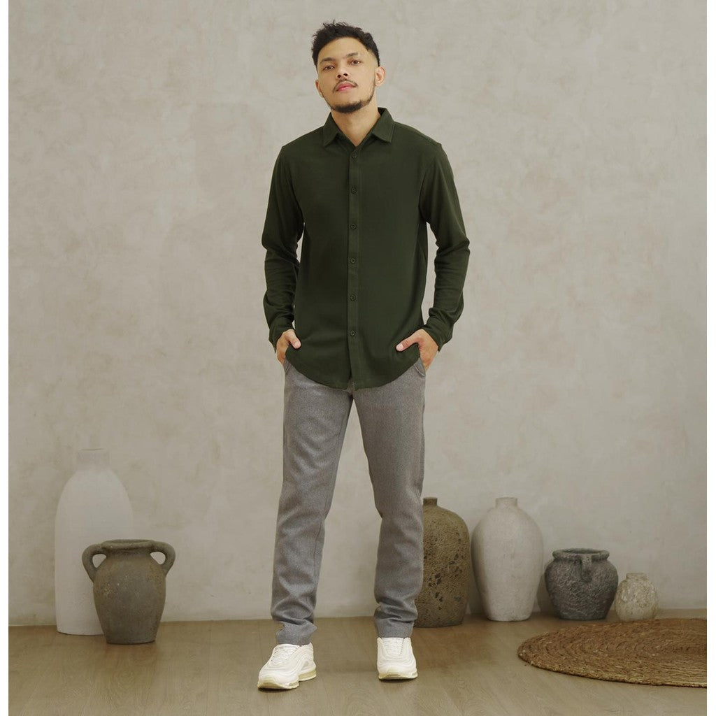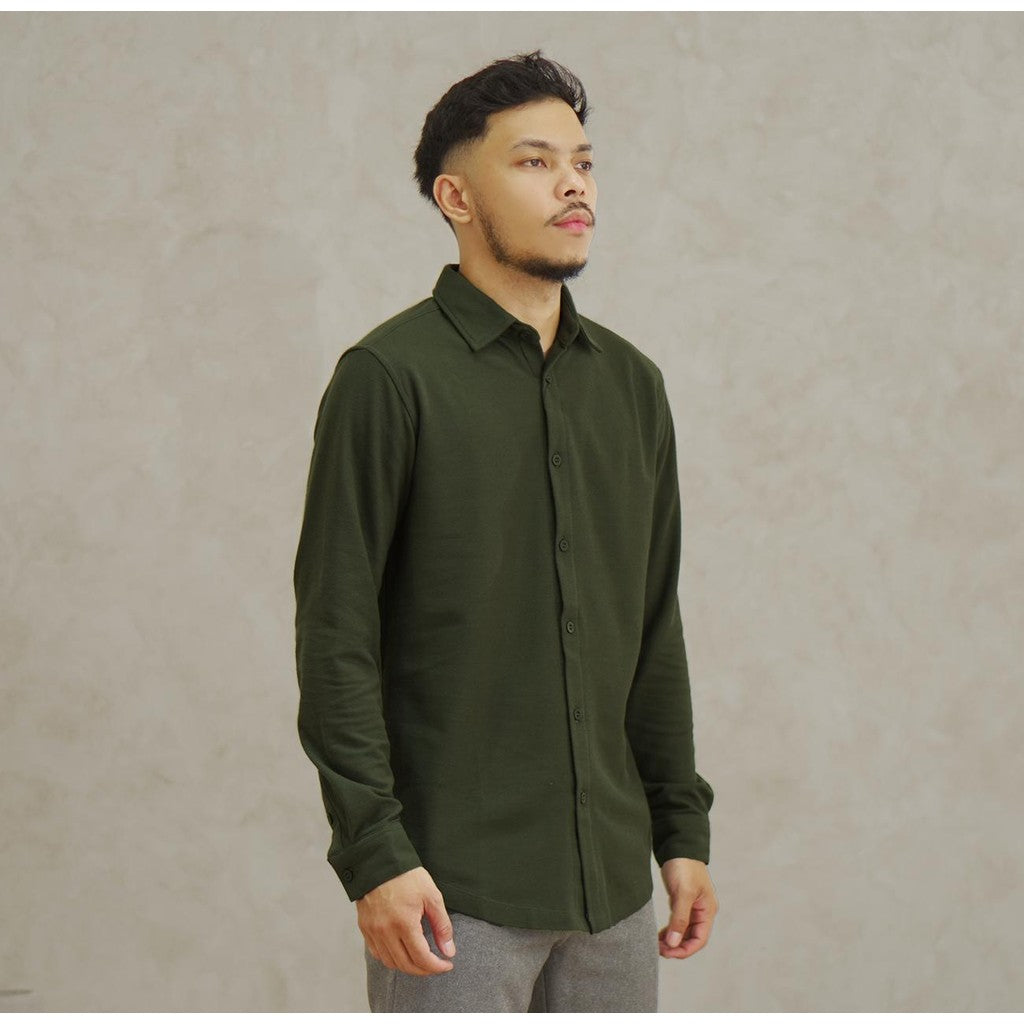 Matsuda Kemeja Pria Pique Lengan Panjang Shunan Olive