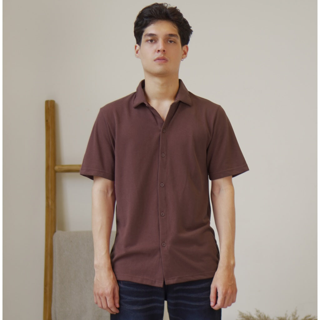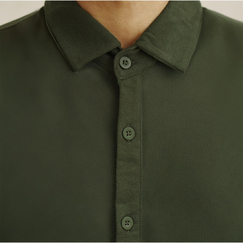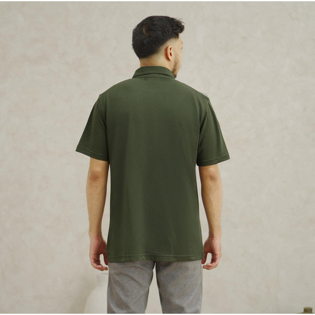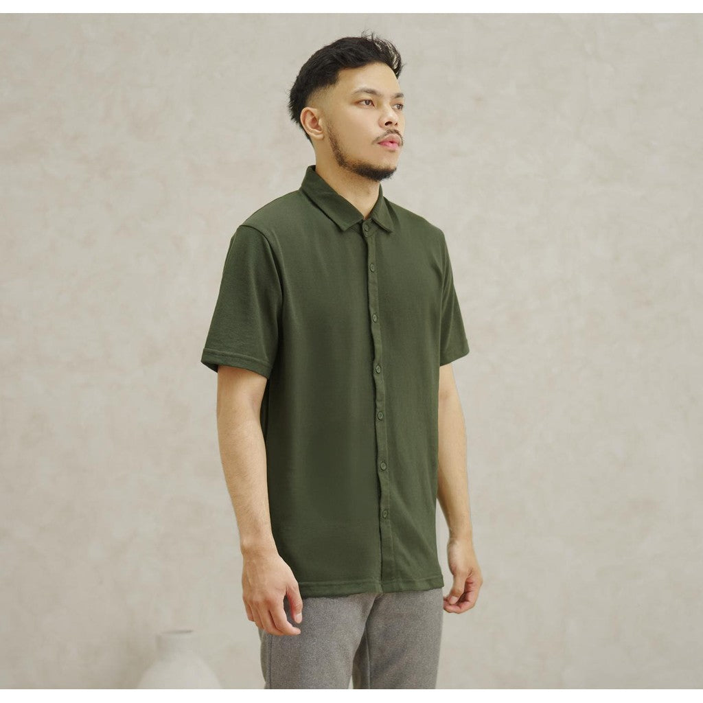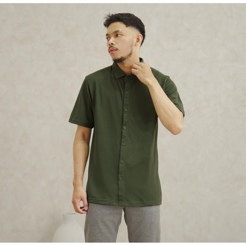 Matsuda Kemeja Pria Polos Lengan pendek Pique Kasual Shiroi Olive
