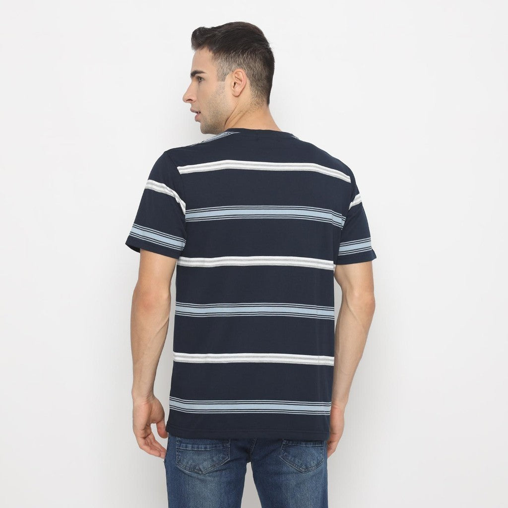 MATSUDA T Shirt Pria Kaos Stripe Lengan Pendek Motosu Navy